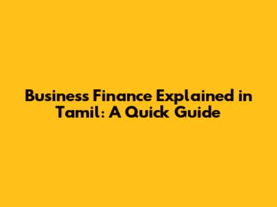 Understanding Business Finance in Tamil