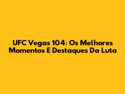 UFC Vegas 104: Os Melhores Momentos E Destaques Da Luta