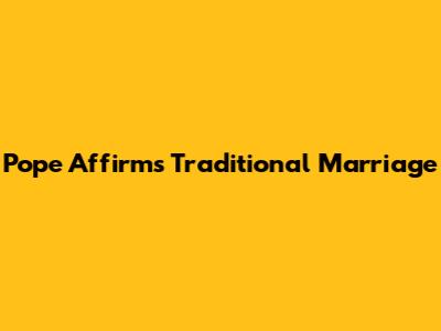 Pope Affirms Traditional Marriage
