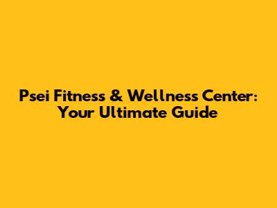 Psei Fitness & Wellness Center: Your Ultimate Guide