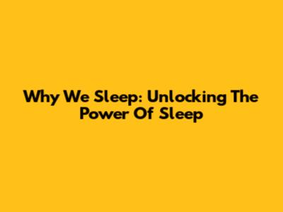 Why We Sleep: Unlocking The Power Of Sleep