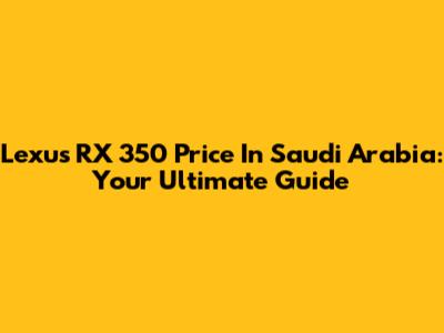 Lexus RX 350 Price In Saudi Arabia: Your Ultimate Guide