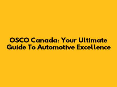 OSCO Canada: Your Ultimate Guide To Automotive Excellence