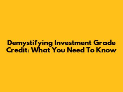 Demystifying Investment Grade Credit: What You Need To Know