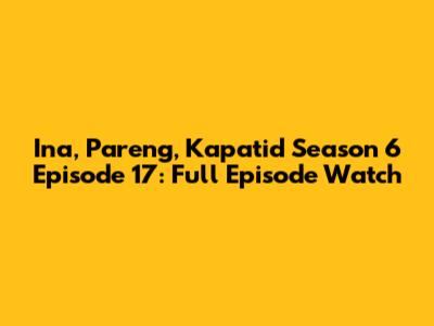 Ina, Pareng, Kapatid Season 6 Episode 17: Full Episode Watch