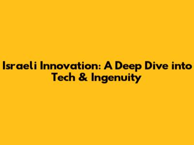 Key Areas of Israeli Innovation