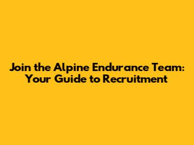 Join The Alpine Endurance Team: Your Guide To Recruitment