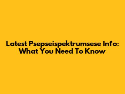 Latest Psepseispektrumsese Info: What You Need To Know