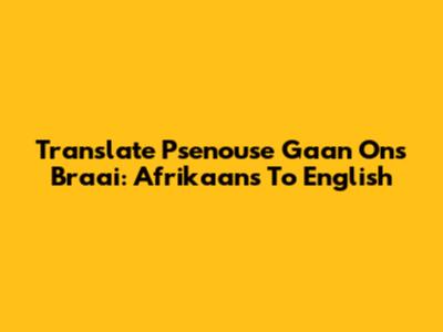 Translate 'Psenouse Gaan Ons Braai': Afrikaans To English