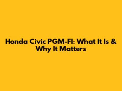 Honda Civic PGM-FI: What It Is & Why It Matters