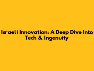 Israeli Innovation: A Deep Dive Into Tech & Ingenuity