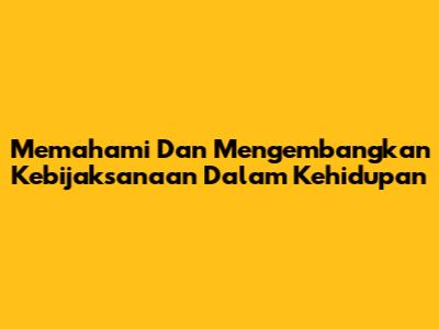 Memahami Dan Mengembangkan Kebijaksanaan Dalam Kehidupan