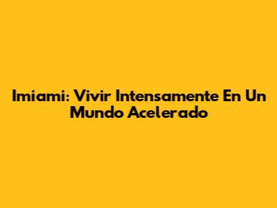Imiami: Vivir Intensamente En Un Mundo Acelerado