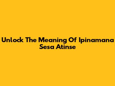 Unlock The Meaning Of 'Ipinamana Sesa Atinse'