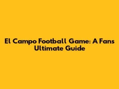 El Campo Football Game: A Fan's Ultimate Guide