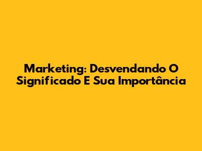 Marketing: Desvendando O Significado E Sua Importância