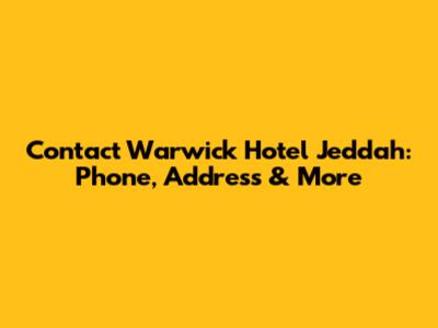 Contact Warwick Hotel Jeddah: Phone, Address & More