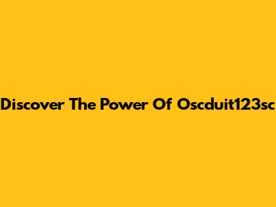Discover The Power Of Oscduit123sc