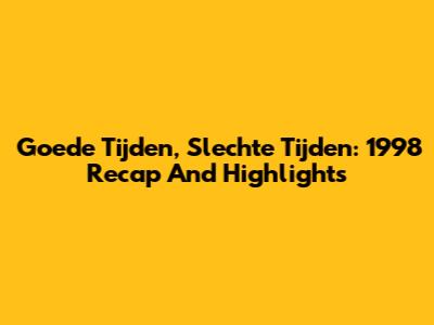 Goede Tijden, Slechte Tijden: 1998 Recap And Highlights